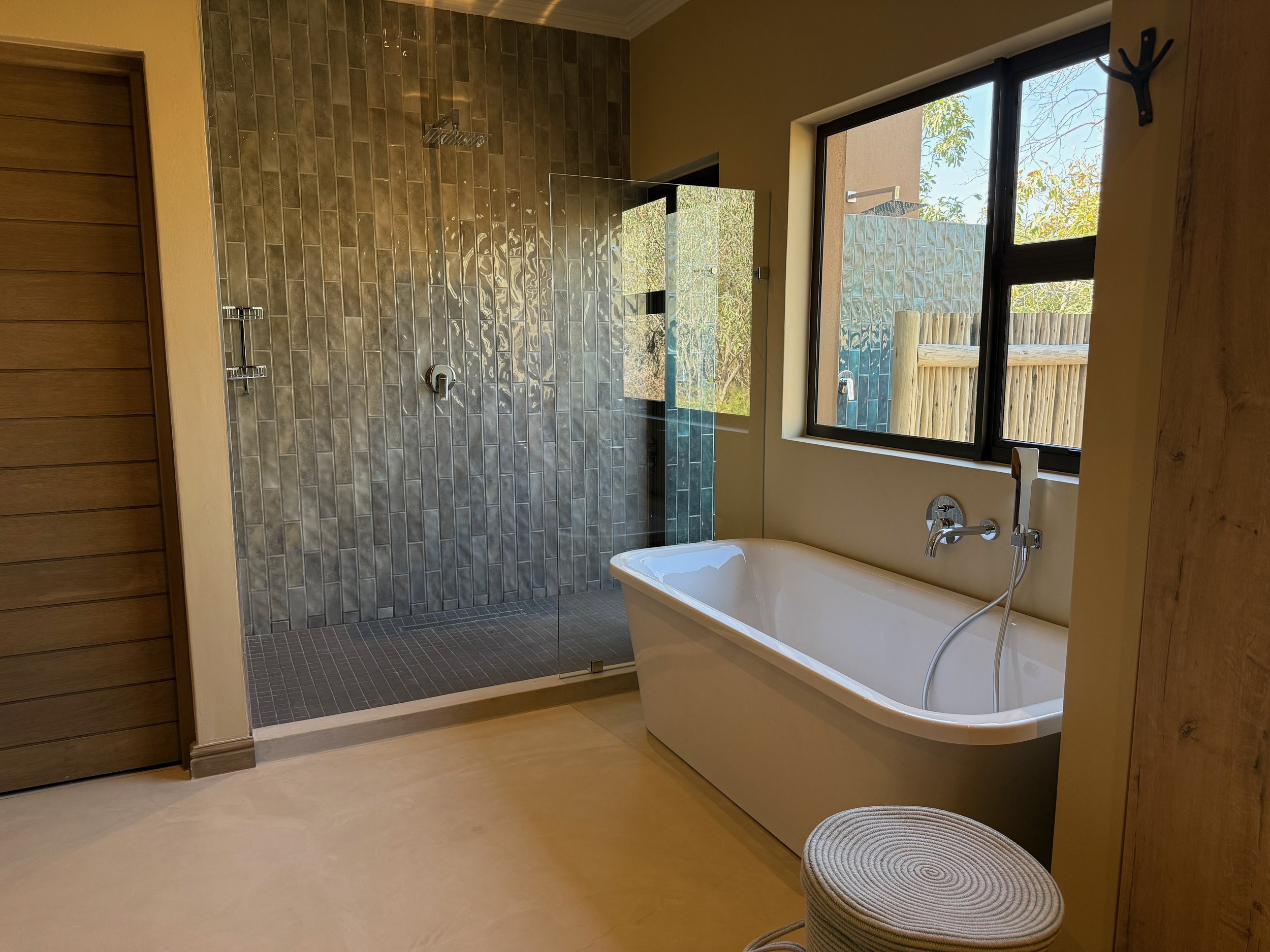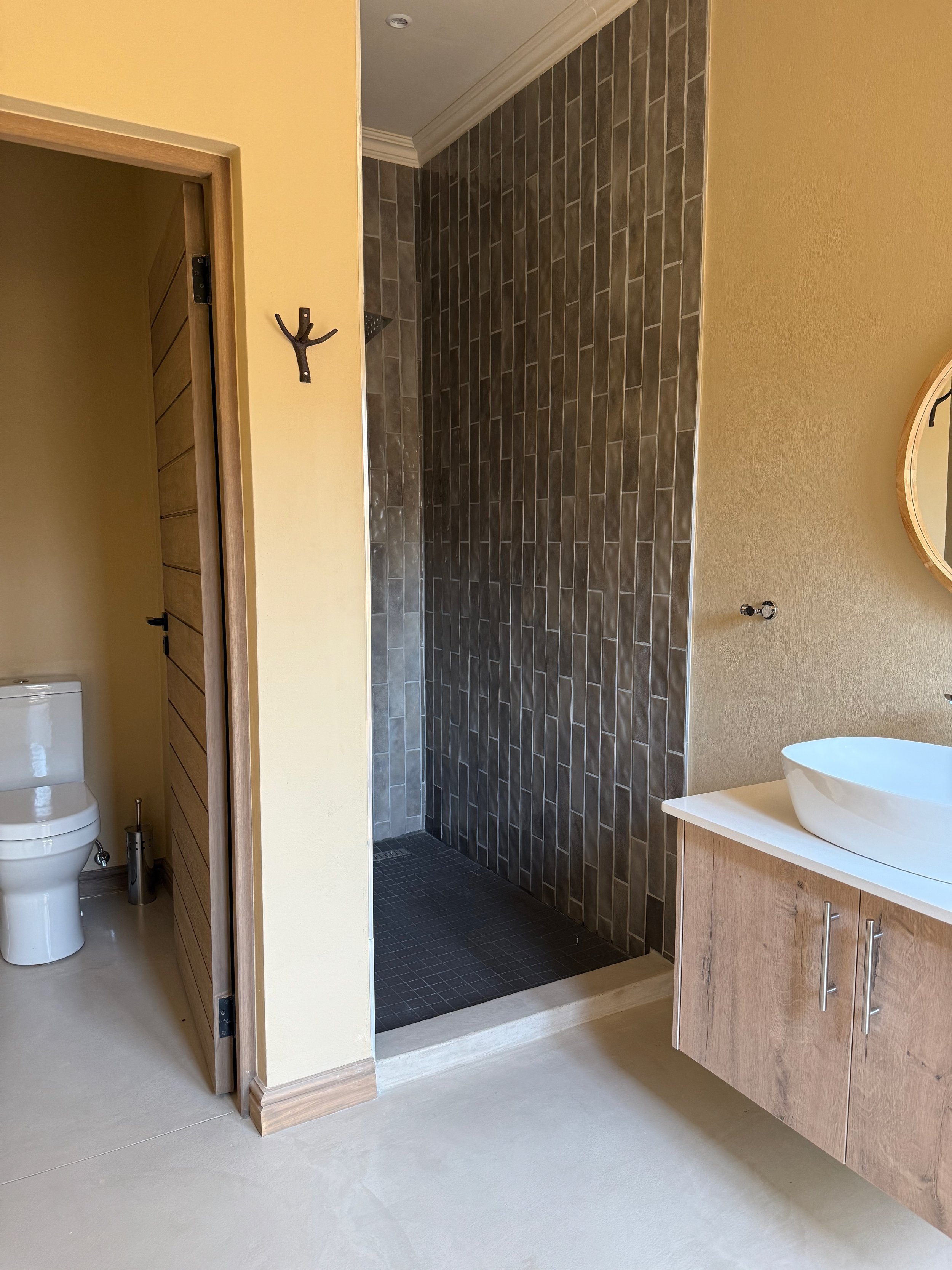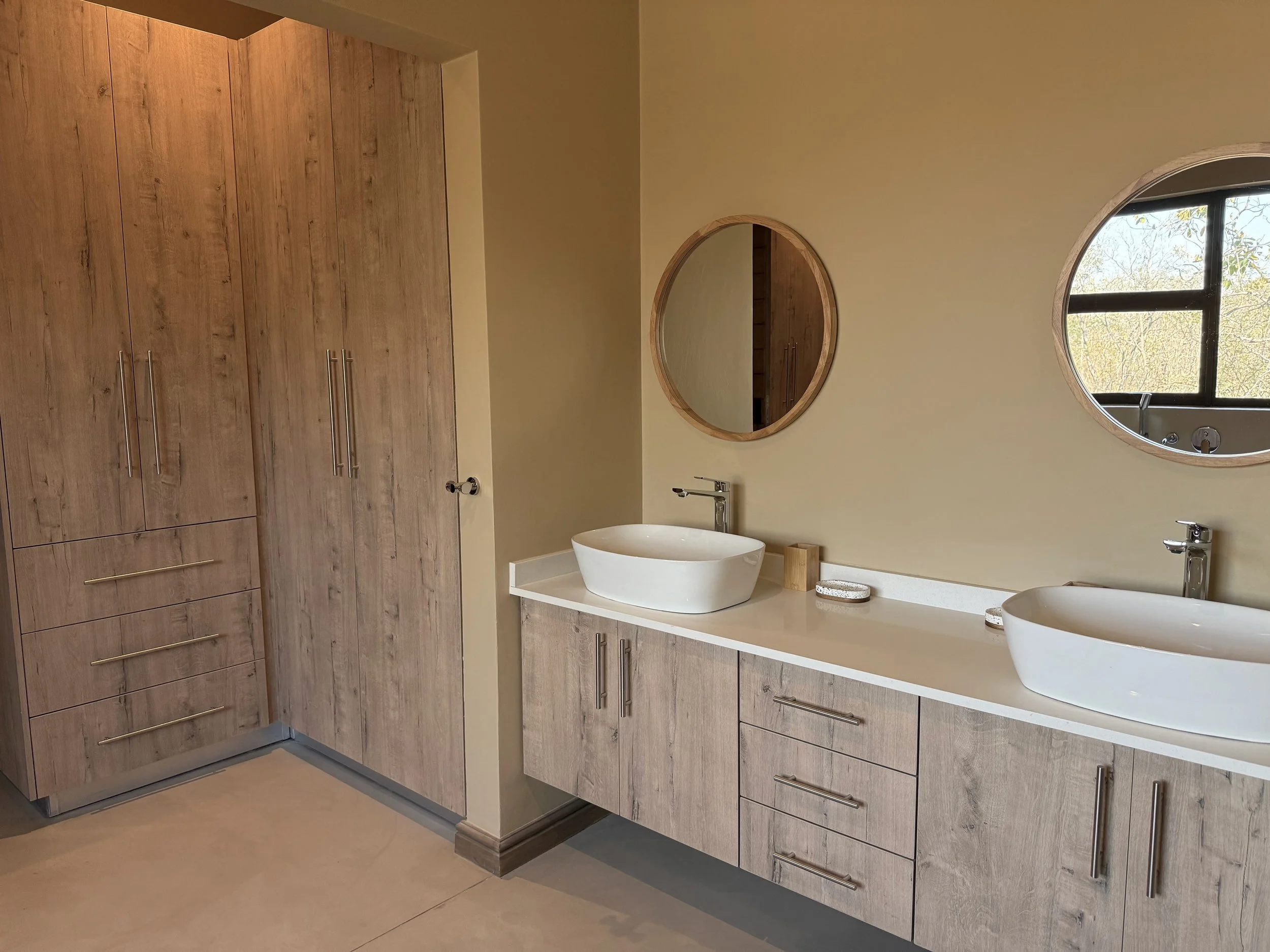 All 3 en-suite bedrooms provide perfect privacy with an indoor and outdoor shower, a toilet, sinks, and a small terrace to enjoy the surrounding nature. Airco’s and fans and sufficient wardrobe space in all bedrooms add up to the comfort. The master bedroom is equipped with an additional bath as well.